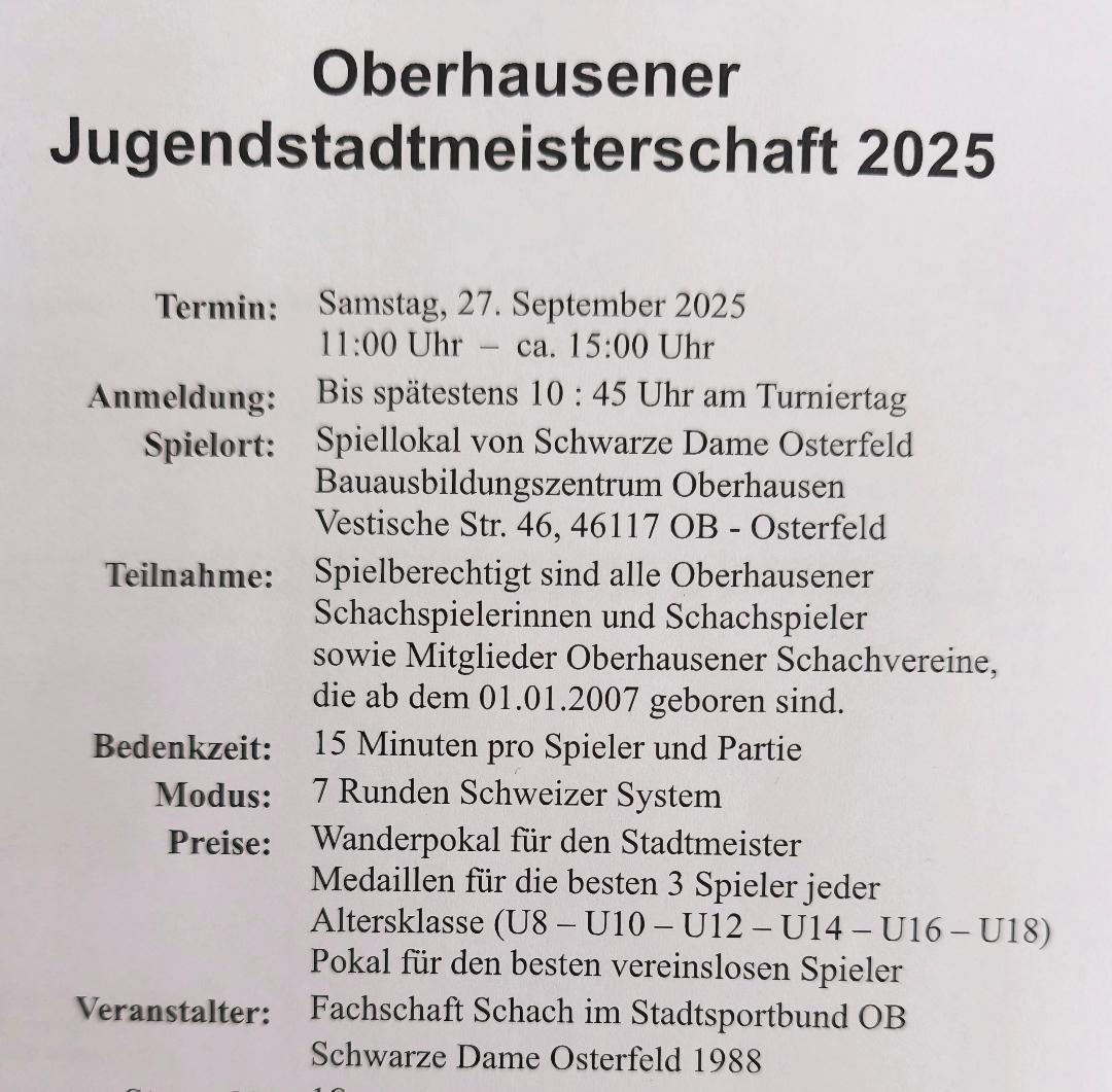 Wir bedanken uns bei der Fachschaft Schach und dem Team von Schwarze Dame Osterfeld für die Ausrichtung.