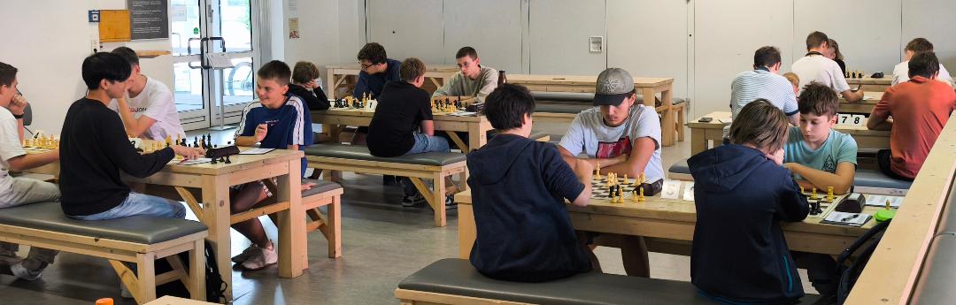 Foto 1. RundeIn der ersten Runde gewannen die Favoriten Arsenii Klochko, Kohshiro Kikuta, Felix Bönsch, Daniel Tatarinov, Niklas Erbe, Elia Büttner, Vaclav Zejdlik, David Kremer und David Kaganovych ihre Partien. Pavlo Takser gab gegen U10-Talent Matvej Cymutta ein Remis ab.
