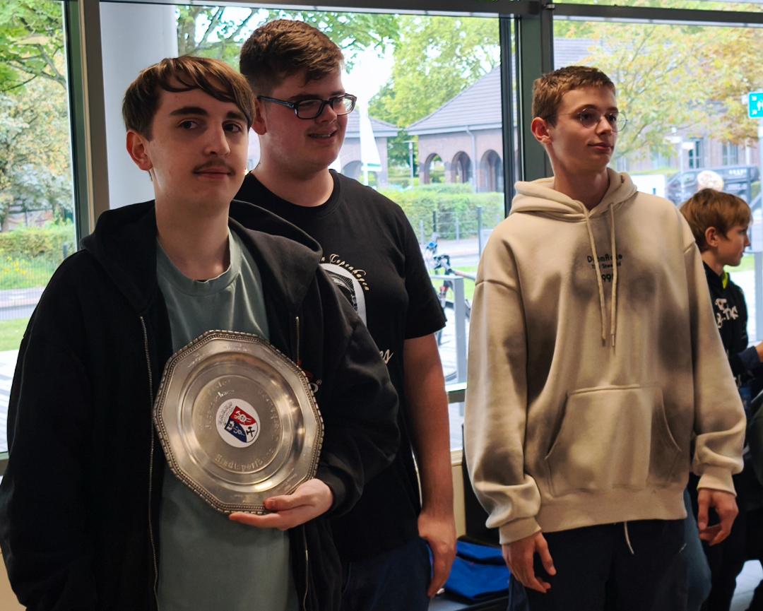 Dafür gab es einen Titelgewinn in der U14 (10 Teilnehmer) für Niklas Erbe (5,5), der ihm (s.o.) gleichzeitig Platz 3 in der Gesamtwertung bescherte. Batu Peker schaffte Platz 4 (4 Punkte) und Jan Tatarinov Platz 7 mit 3 Zählern.